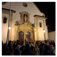 Kolpingsfamilie gestaltet das 15. Adventsfenster vor der katholischen Kirche