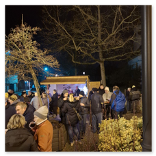 Im Anschluss an die Gestaltung des Adventsfensters konnten sich die Gäste an der Glühweinhütte mit Glühwein und Kinderpunsch stärken und in gemütlicher Runde verweilen.