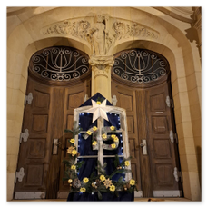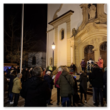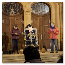 Kolpingsfamilie gestaltet das 15. Adventsfenster vor der katholischen Kirche